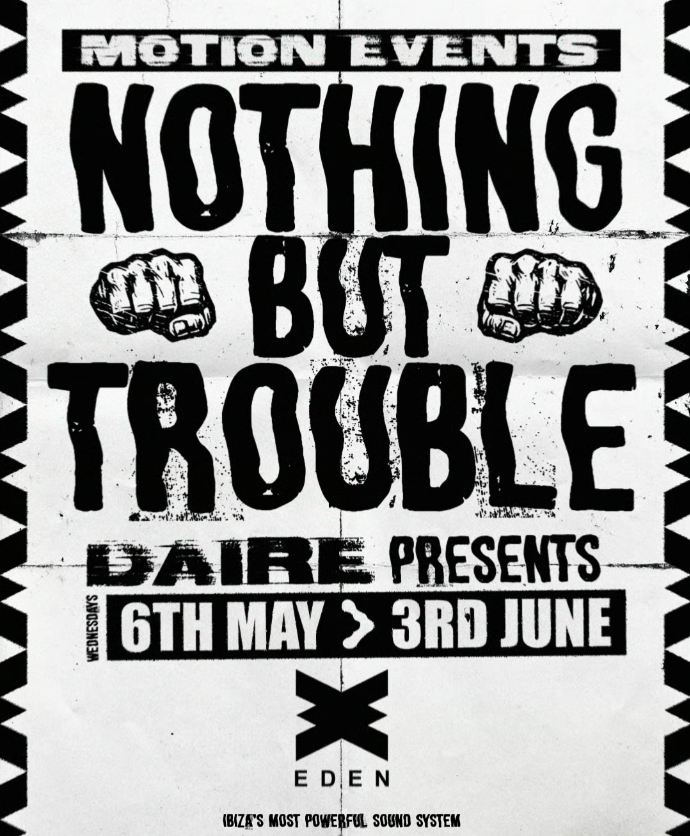 Known for his vibrant techno rhythms and euphoric trance elements, Nothing But Trouble has dominated the UK scene, and now it’s ready to make its mark on the White Isle. This year, Nothing But Trouble will take over Eden in the heart of San Antonio, bringing the heat every Wednesday.